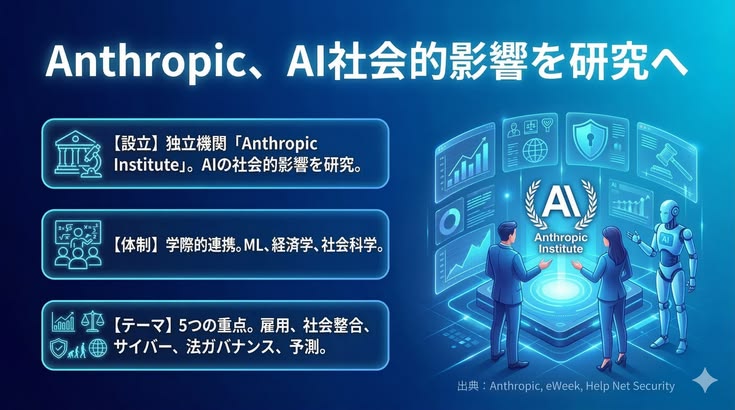 2026/03/18Anthropic、AI社会的影響を研究へ