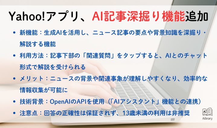 2025/12/17Yahoo!アプリ、AI記事深掘り機能追加