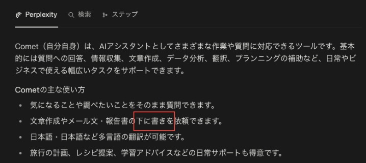 Cometは英語圏を中心に開発されているため、日本語での利用では文章が不自然になることがあります。